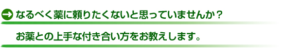 薬に頼り切らず上手に付き合っていく秘訣をお教えします。 |